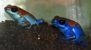 そしてこちらはイミテーターヤドクガエルDendrobates imitatorです。サッカーボールに似ていたので並べてみました。この画像とリンク先一番上の画像は同じと思います。でも色が違って見えますね、リンク先の方が赤みが強すぎるのでしょうか。どっちの画像が本物の近いのかと言いますと、ブログの方が実物に近いと思います。