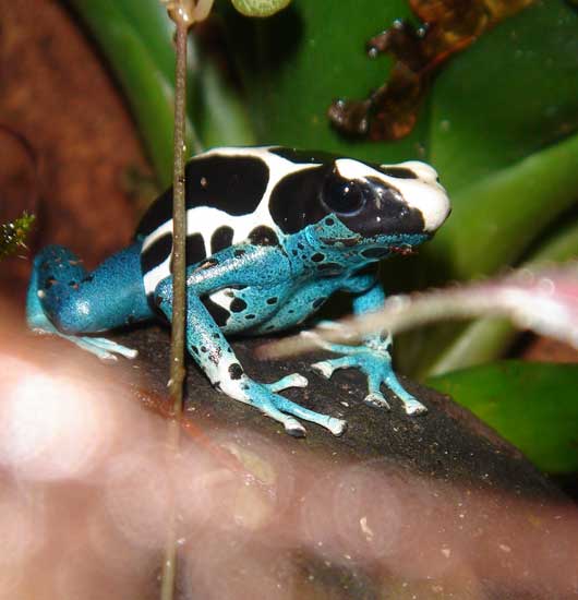 アイゾメヤドクガエル‘オイヤポッキ'Dendrobates tinctorius 'Oyapok'です。リンク先では‘ホワイト'としていますが、‘オイヤポッキ'とするのが正統派と思いますので、早めに修正するようにしなければと思っています。‘ホワイト'でも流通名としてなら間違っていないけど、産地を現す‘オイヤポッキ'がベターですよね。2つの画像はお客さんが撮って、送ってくれたものです。私の画像よりずっときれいで、特徴もよく現していると思います。