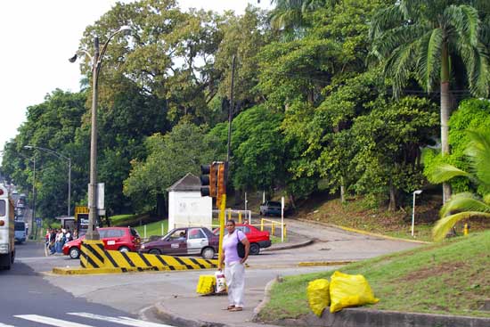 その山に登っていく道は市街地にあります。首都の中にある「丘」と呼ばれている小さな山にもヤドクガエルが棲んでいるパナマ、すごい。機会がありましたら、エクストラクリーパー2号も見てください。ヤドクガエルに会いにパナマへ行ったときの写真が載っています。
