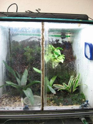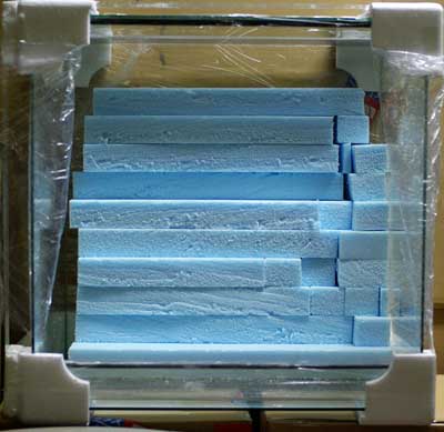 カエル飼育用ビバリウムケースを作成中の様子です。ワイルドスカイでセットしてお送りするものです。リンク先ではヤドクガエル用となっていますが、カエルの種類は何でもいいです。これまでは白いスチロールを使用していましたが、今回は水色にして写真に撮ったら水色がきれいだったので、ここに載せました。なお、ここに写っているケースは幅と高さがそれぞれ60cmあって、リンク先表示の価格とは異なります。2008年05月23日