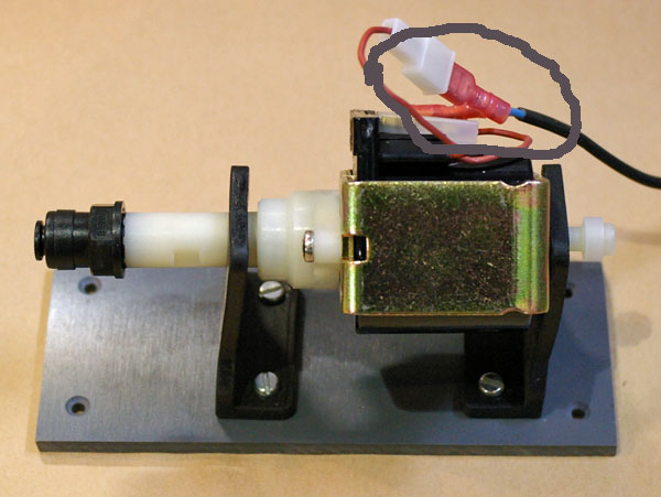 先日お知らせしましたミスティングシステムのコードをかしめる部分は、右の画像の丸で囲んだ部分の赤いカバーがかかっているくびれている部分です。この画像では見えていないもう一本の電線ににも同じ赤いカバーがありますので、同じようにかしめてください。2008年05月10日