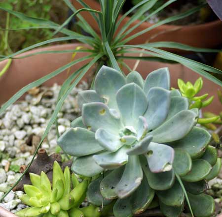 こっちの多肉も食べられています。好みがあるみたいで、隣にある緑の方は食べないみたいです。