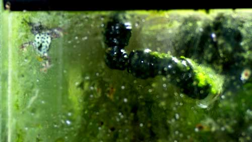ミスティングシステムのノズルにもコケがついてます。しかしこれ、見た目はいいのですが、霧が出る穴までコケが広がると詰まります。そういうときは指で一拭きです。